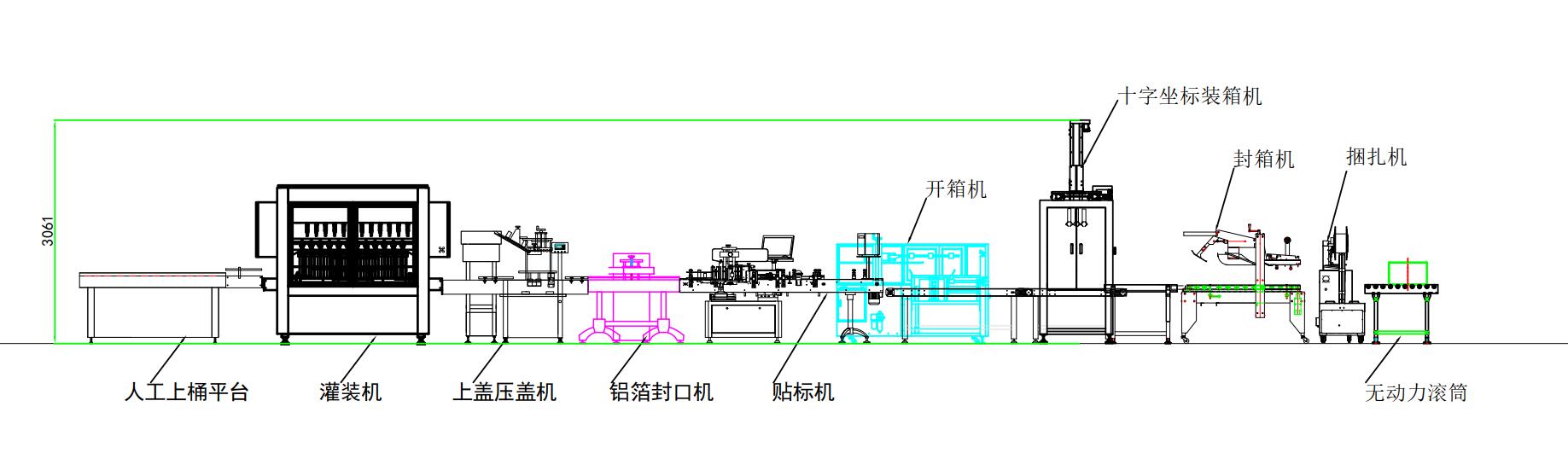 主要是人工上桶-灌裝機(jī)-上蓋壓蓋-鋁箔封口-貼標(biāo)機(jī)-開箱機(jī)-裝箱機(jī)-封箱機(jī)-捆扎機(jī)。價(jià)格可以根據(jù)這個(gè)方案的設(shè)備決定。還可以根據(jù)工廠配備人工來定不同的流水線。價(jià)格在5-25萬左右,具體價(jià)格以銷售方案報(bào)價(jià)為準(zhǔn)。