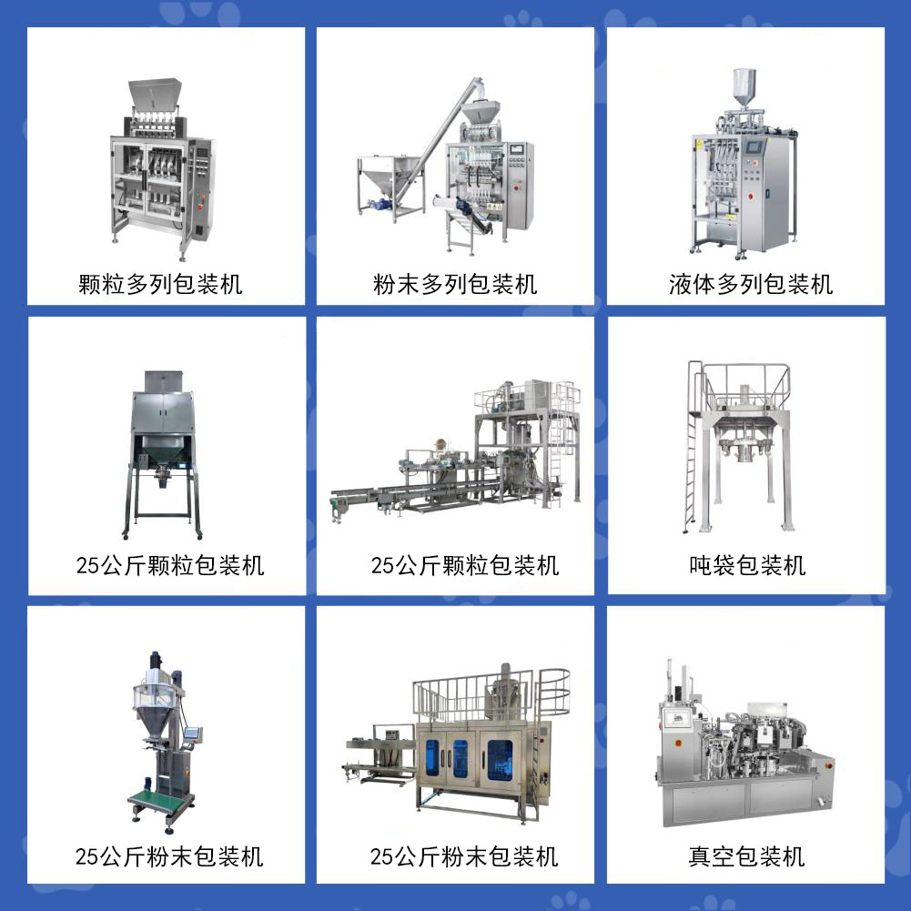 包裝生產廠家生產的其他包裝設備:給袋式包裝機、多列包裝機、真空包裝機、25公斤包裝機、噸袋包裝機等。