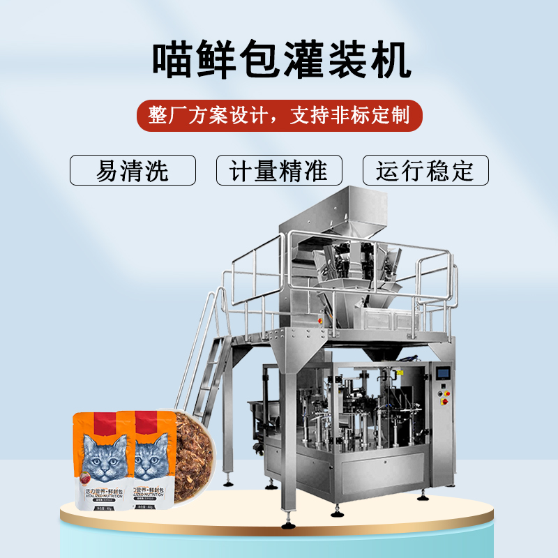 喵鮮包灌裝機適用于包裝貓糧、狗糧、濕糧、寵物食品、雞胸肉、三文魚、金槍魚、肉粒等多種產品包裝,質保一年,終身維修...